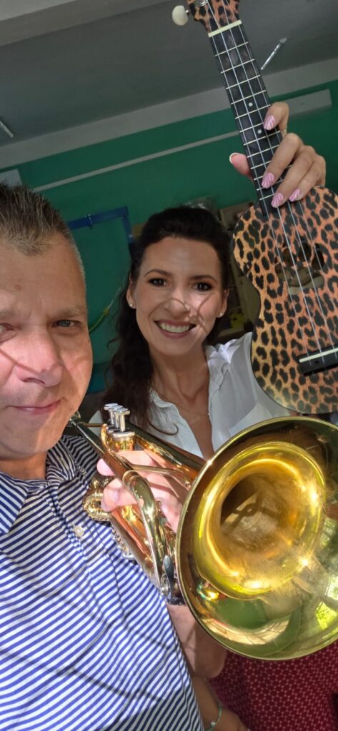 Jacek jest utalentowanym trębaczem, aranżerem i realizatorem dźwięku. Z powodzeniem współpracuje z placówkami oświatowymi, ośrodkami SOSW, OREW pomagając w realizacji projektów edukacyjnych. Wspólnie z Aleksandrą tworzą zgrany duet – zarówno na scenie, jak i w życiu prywatnym – łącząc pasję, doświadczenie i kreatywność w każdym projekcie.
